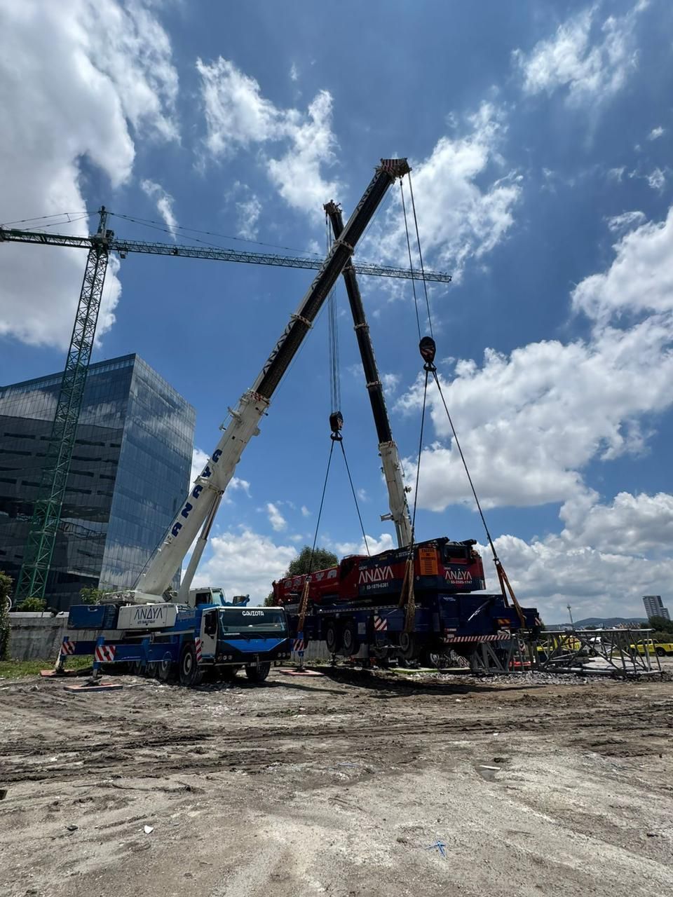 - Colibrí (Zoomlion) – 300 tons, pluma 80 m + aguilones 110 m